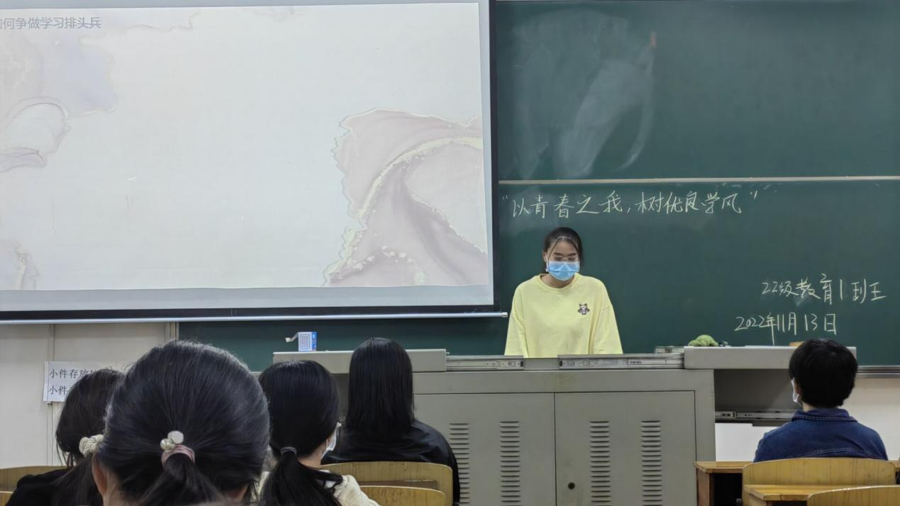 图为22级教育一班主讲人发言